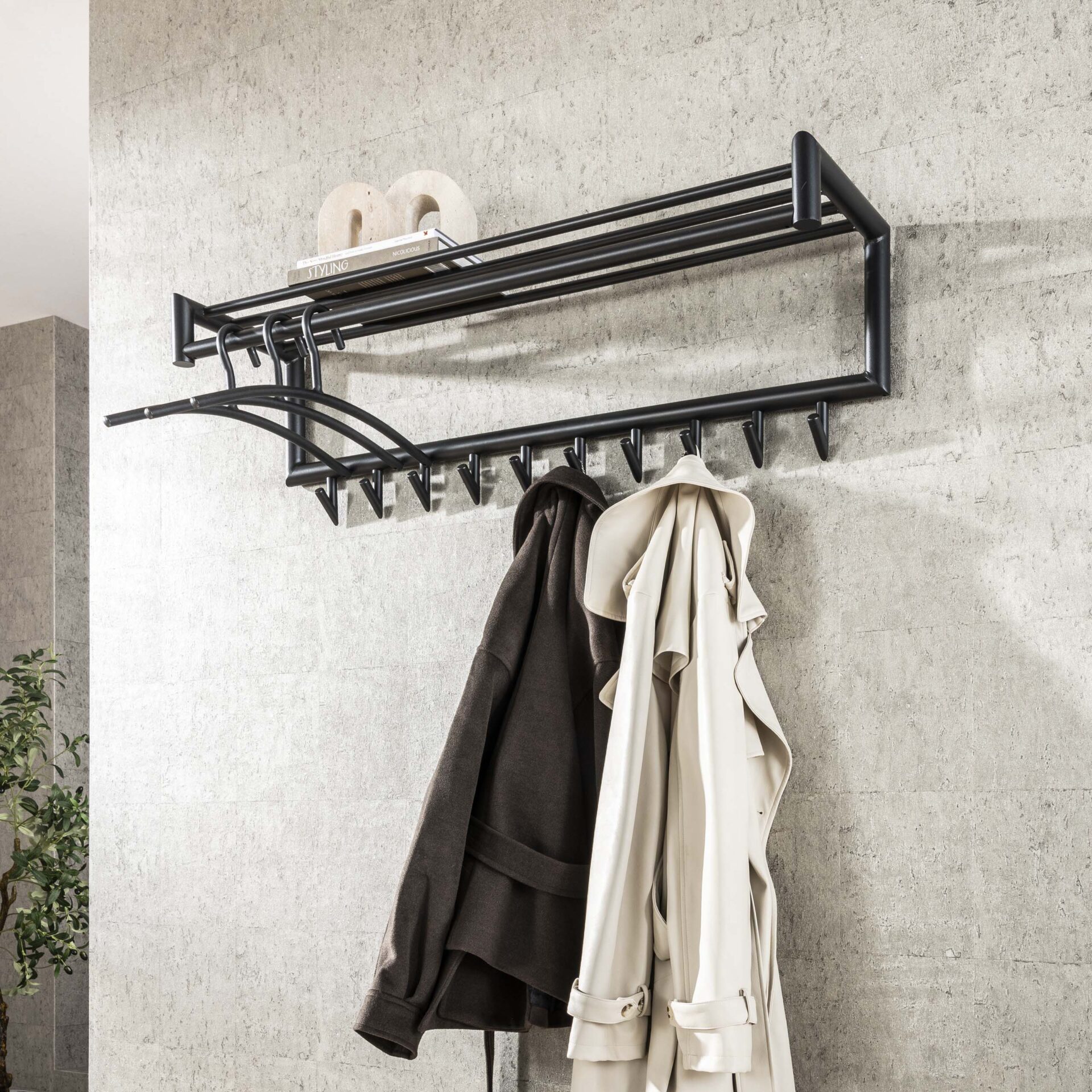 Kapstok Tubo roede en hoedenplank 10 haken / Mat donkergrijs