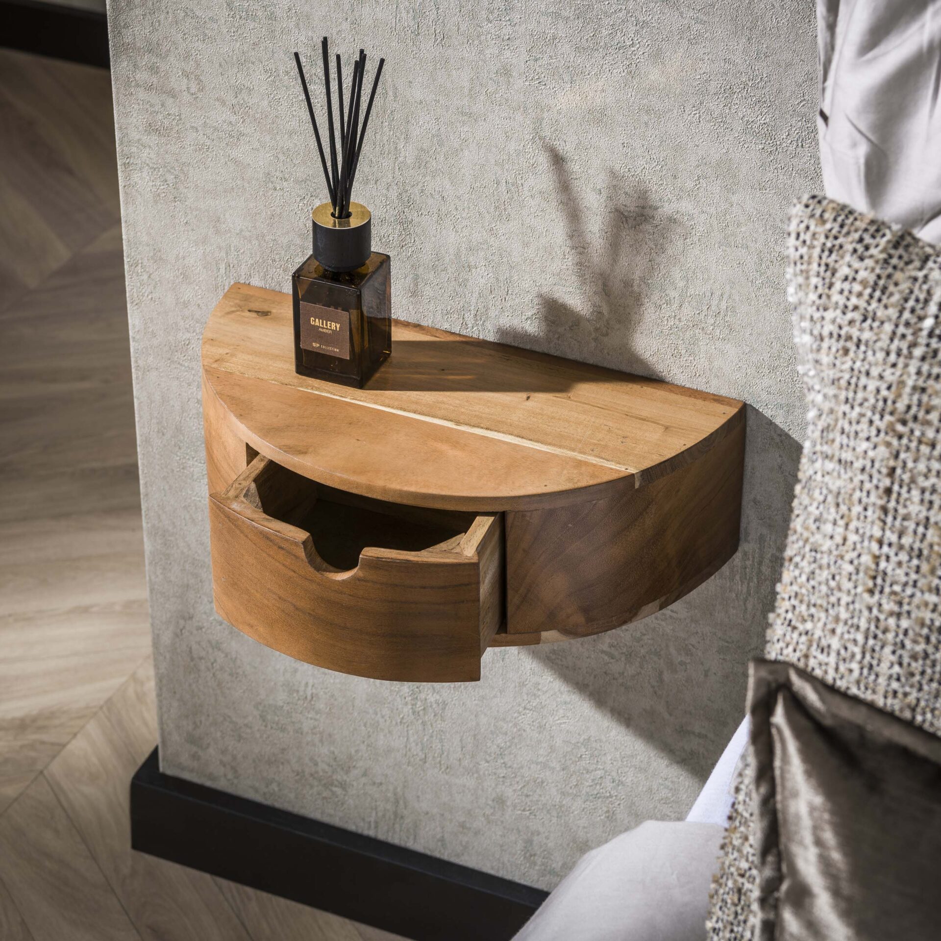 Nachtkastje Curve zwevend 1 lade / Massief acacia