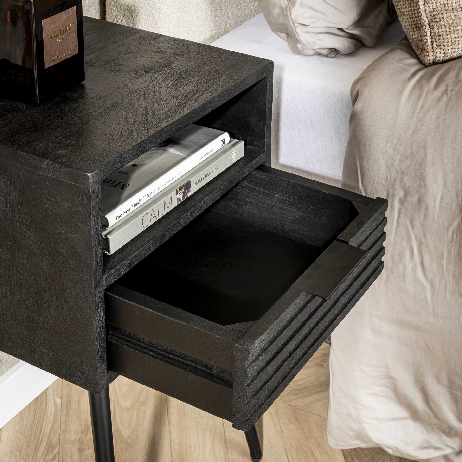 Nachtkastje Marina 1 lade / Massief mango zwart