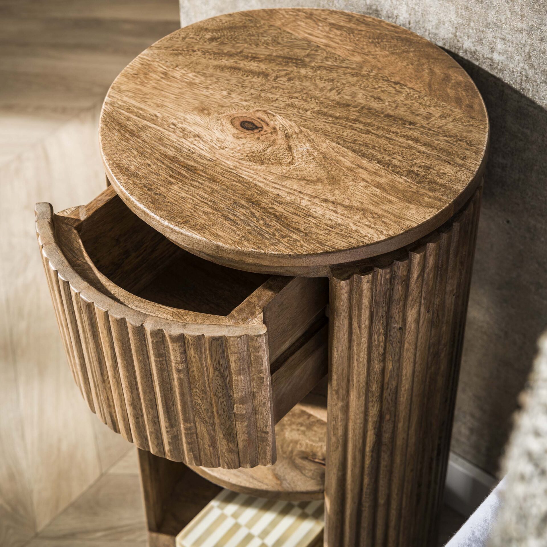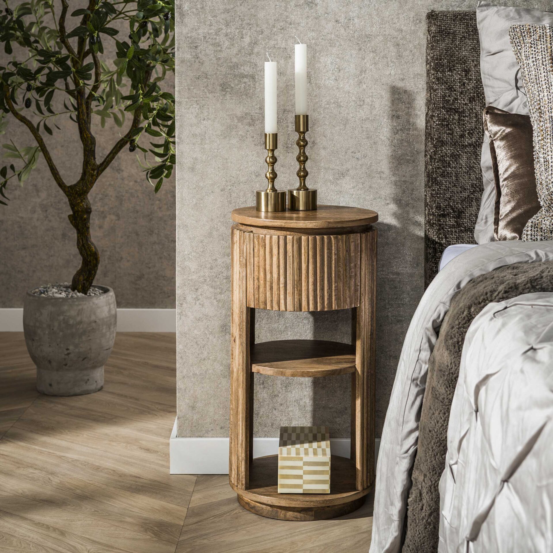 Nachtkastje Wave XS rond 1 lade / Massief mango zand