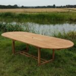 Optimaliseer je buitenervaring met de Livingfurn ovale uitschuifbare tuintafel. Gemaakt van duurzaam teakhout, biedt deze elegante eettafel standaard 180 cm ruimte, maar kan moeiteloos worden uitgeschoven tot 240 cm. Verleng je tafelplezier en geniet van heerlijke momenten in de tuin of veranda.
