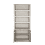 Ontdek Boekenkast Brussel, gemaakt van mangohout en afgewerkt met een stijlvolle zandafwerking. Deze kast een stijlvol en strak design met functionaliteit. Met vier open vakken, inclusief legplanken, en twee greeploze deuren uitgerust met een handig push-to-open systeem, biedt deze kast een perfecte balans tussen opbergruimte en presentatie.