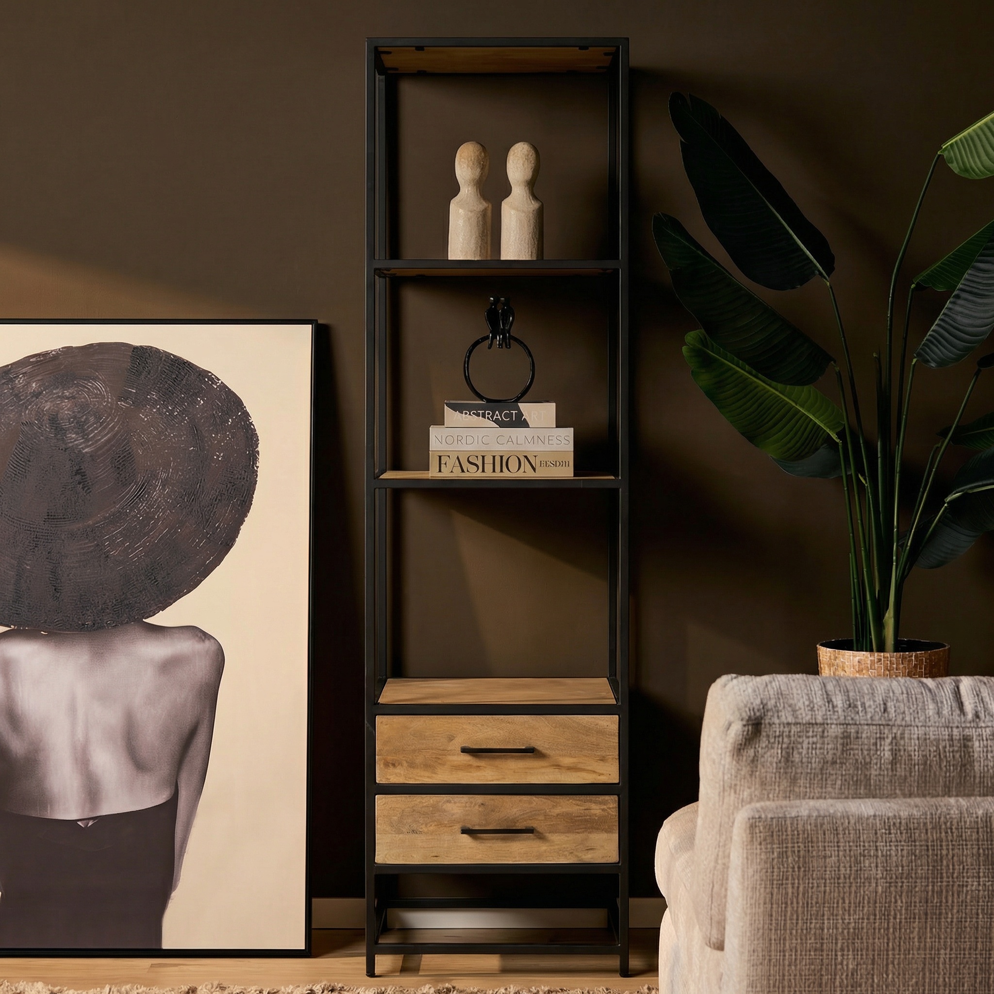 Starfurn – Boekenkast Dakota met lades Naturel Mangohout 55 cm