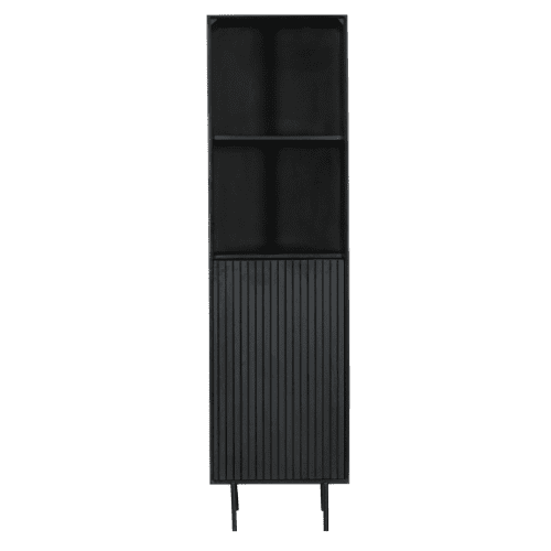 Boekenkast ‘Madison’ is gemaakt van mangohout. Het metalen frame is afgewerkt met een zwarte lak. Dit model is voorzien van één deur en 2 openvakken. De deur is voorzien van een verticaal lattenpatroon en is afgewerkt met een zwarte lak.
