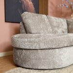 Ontdek de luxe en comfort van de MySofa Alma, een stijlvolle 2,5 zits bank met een afgeronde divan aan de linkerkant. Kenmerkend zijn de zachte, ronde hoeken die de Alma een uitnodigende uitstraling geven. Deze bank is bekleed met de hoogwaardige Stof Trenza 8 in een elegante Greige tint, gemaakt van 100% polyester.