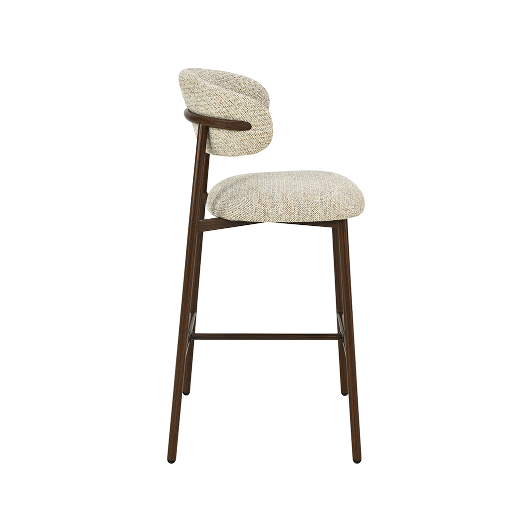 Barkruk Kaito van LABEL51 past perfect in de Japandi woonstijl. Deze mooie kruk is voorzien van een zachte stof met een subtiele kleurschakering. De natuurlijke kleuren van de stof, in combinatie het de beige of hout-gekleurde onderstel, maken dit een van de hipste krukken van dit moment.