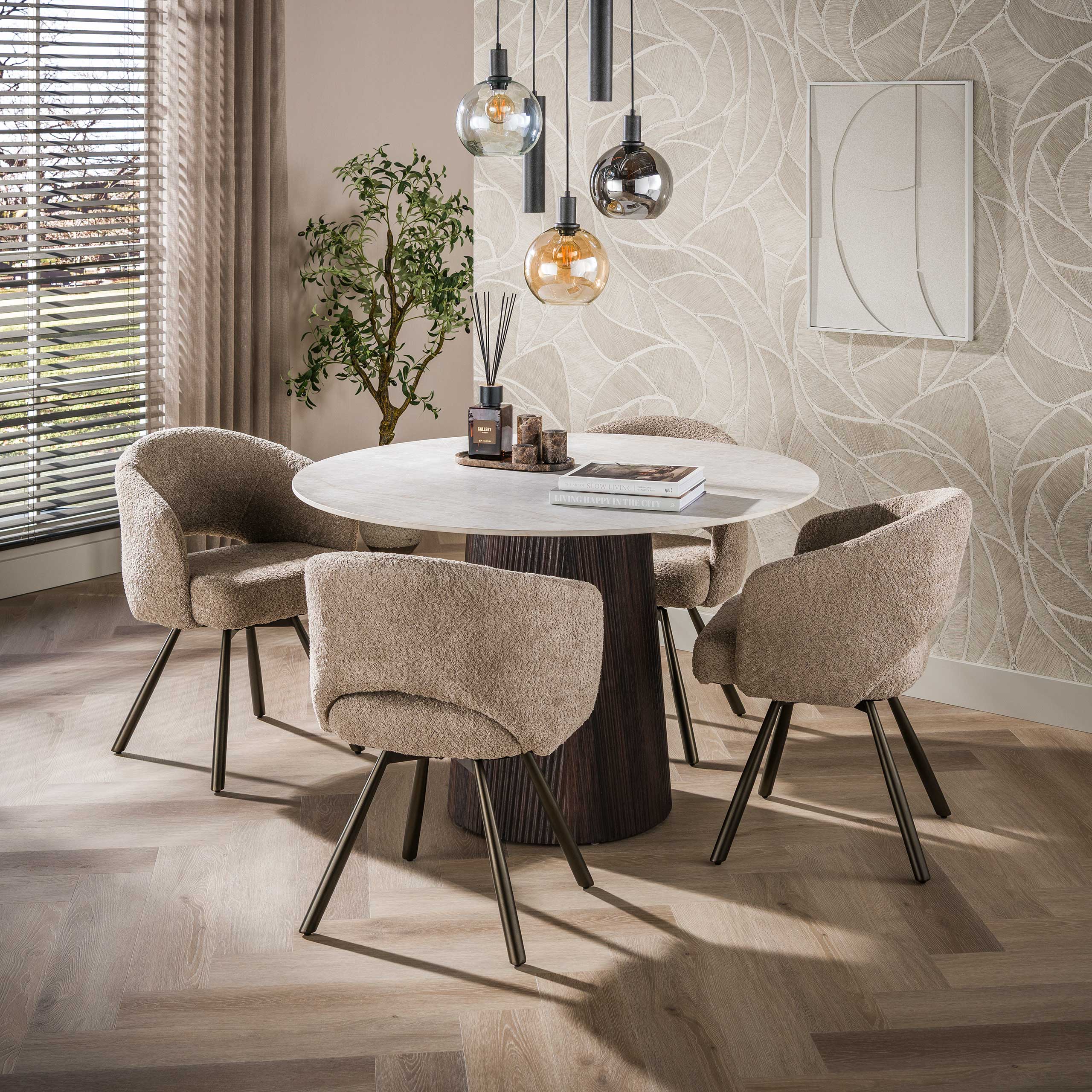 LABEL51- Eetkamerstoel Silvain – Mushroom – Boucle – Taupe Metalen Frame