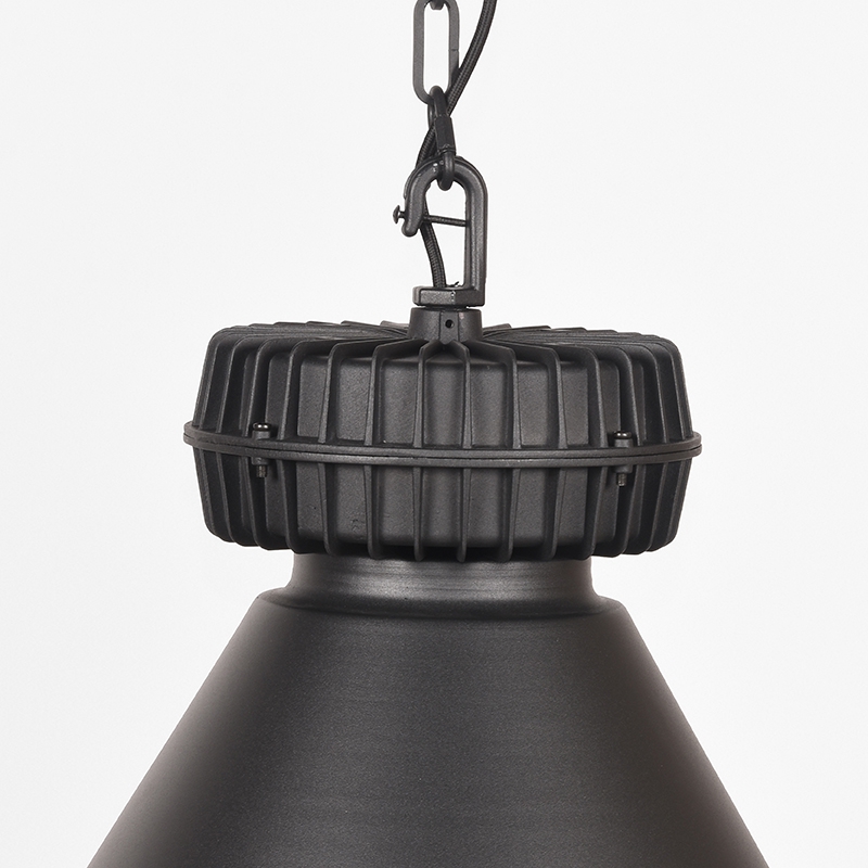 Hanglamp Duisburg van LABEL51 is een enorm grote, robuuste lamp, uitgevoerd in de kleur zwart, geinspireerd op de ouderwetse fabriekslamp.